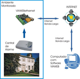 No caso de monitoramento e controle de Centrais de Alarme, o Via Web Ethernet