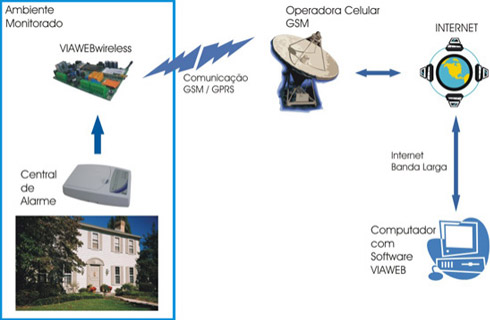 O Via Web Wireless é aplicado no monitoramento e controle (*) de dispositivos à distância. A sua comunicação com o Centro de Monitoramento e Controle ocorre SEM FIO através da Rede Celular GSM/GPRS (**) e INTERNET.
